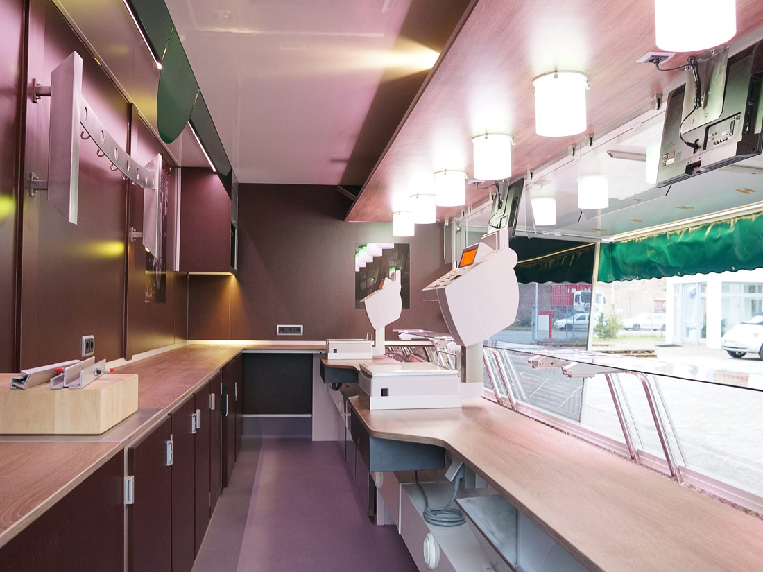 6,2 m Deckenlichtkasten mit Bord inkl. 7 BÄRO-Food Strahler mit Lampenschirme