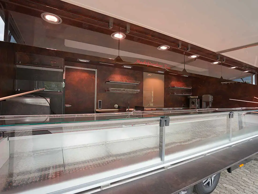 • Cube Thekenaufsatz • Verkaufstkühltheke 730 mm tief • Elektrisch- ausfahrbare Verkaufkühltheke • Kühlschubladen, Kühlauszüge • Lagerschrank in E1- Kisten Raster an Stirnwand • Bäro -LED Beleuchtung • Ausführung ohne Mittelpfosten • Regalborde • LED Beleuchtung unterhalb Verkaufsklappe • Design – Lampenblende