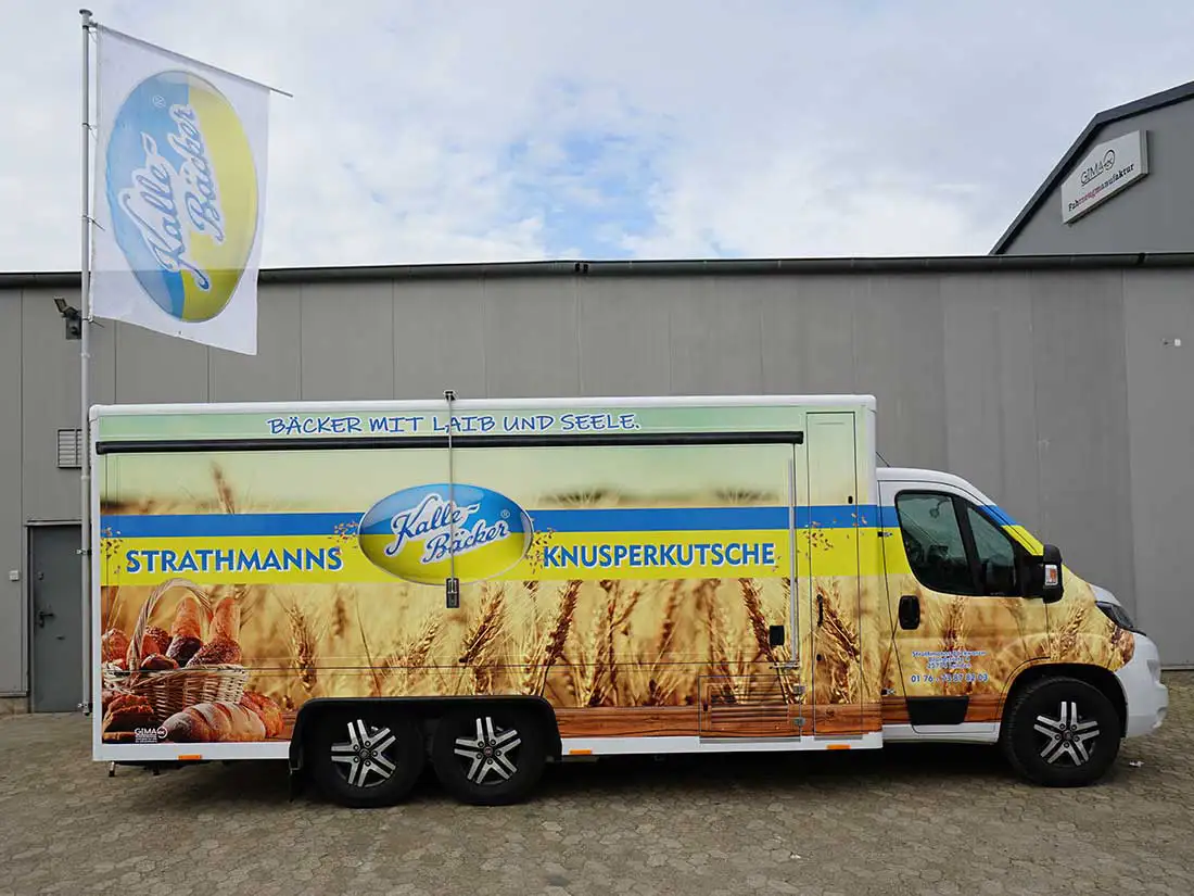 • Cube Thekenaufsatz • Verkaufstkühltheke 800 mm tief, • Backwarentheke, 800 mm tief • Kühlschubladen, Kühlauszüge, Sichtkühlschrank • Stickenfächer unterhalb Verkaufstheke • Glaswerbetafel • Bäro-LED Beleuchtung • LED-Beleuchtung unterhalb Verkaufsklappe • 35 m Brotregal umlaufend • Fahrerhausverblendung, einschiebbar • Seitenblenden • Individuelle Fahrzeugbeschriftung